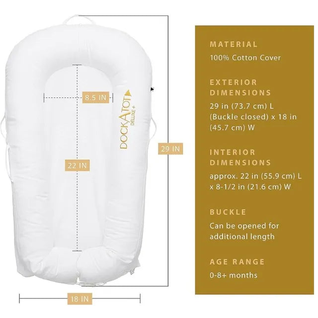 قاعدة DockATot Deluxe+ هي قاعدة إرساء متعددة الاستخدامات حائزة على جوائز للأطفال من عمر 0 إلى 8 أشهر. تُعدّ قاعدة Deluxe+ المكان الأمثل للأطفال للاسترخاء واللعب والاحتضان وتغيير الحفاضات والاستلقاء على البطن تحت إشراف. صُممت لمحاكاة رحم الأم، وصُنفت كأحد منتجات الأطفال الأساسية لدى الآباء حول العالم، ويمكن استخدامها في جميع أنحاء المنزل، وهي مثالية للسفر. خضعت قاعدة Deluxe+ لاختبارات صارمة لضمان بيئة آمنة للأطفال الصغار. صُنعت في أوروبا.