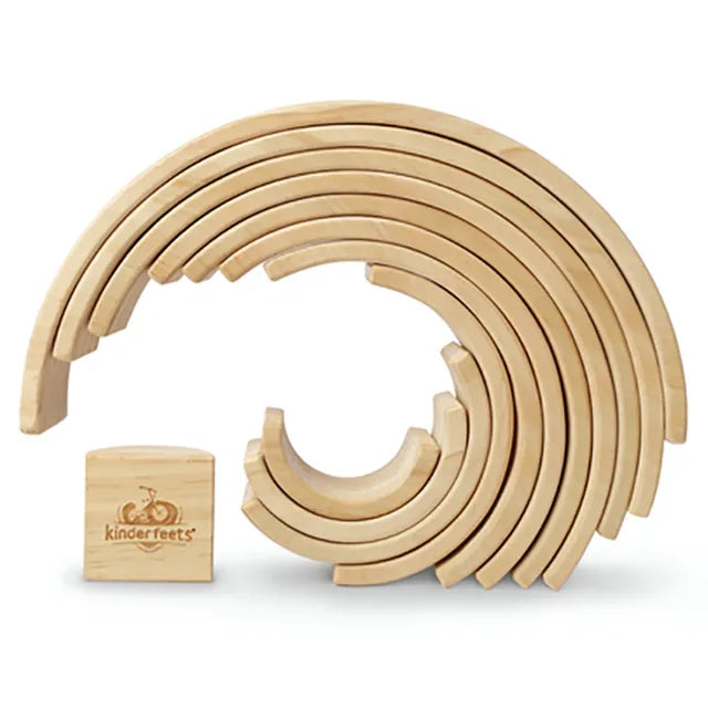 استكشف لعبة أصلية تُستخدم في لعب والدورف ومونتيسوري: أقواس كيندر فيتس الخشبية الكبيرة باللون الطبيعي! ١٢ قوسًا قابلًا للتكديس يُشجع الأطفال على الفرز والتركيب والتطور المعرفي مع الاستمتاع باللعب الحر التخيلي. اكتشف جميع الطرق اللامتناهية التي يُمكن من خلالها دمج الأقواس في سيناريوهات اللعب (كأسوار في مشاهد المزارع، وكجسور وبنية تحتية في البلدات أو المدن المُشيدة، وكزوايا نوم للدمى والأصدقاء ذوي الفراء، وغيرها الكثير). كل قوس مصنوع يدويًا، لذا إذا لم يكن أحدها مناسبًا تمامًا، فجرب تدويره! صُنعت الأقواس باستخدام خشب الصنوبر المعتمد من مجلس الإشراف على الغابات (FSC) وصبغات ناعمة مائية، وقد تحتوي على علامات وأنماط صغيرة وفريدة ناتجة عن تركيبها الخشبي الطبيعي. متوفرة بلون خشب الصنوبر الطبيعي أو قوس قزح، ومناسبة للأعمار من ١٢ شهرًا فما فوق. أبعاد المنتج: ٣٦ طول × ٧ عرض × ١٨ ارتفاع سم أو ١٤ بوصة × ٢.٧٥ بوصة × ٧ بوصة. تستند القياسات إلى أكبر قوس. لا حاجة للتجميع.