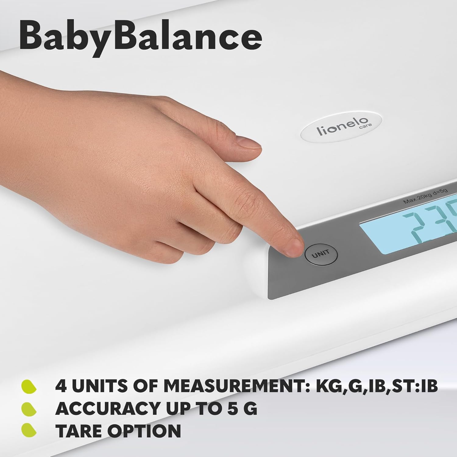 صُممت موازين ليونيلو بيبي بالانس البيضاء لمساعدة الآباء على مراقبة فعالية الرضاعة ونمو الطفل منذ اليوم الأول. يضمن تصميمها المريح مع صينية مُصممة بشكل انسيابي وضعية جلوس آمنة للطفل أثناء الوزن. يعمل القفل التلقائي على تثبيت القراءة حتى مع حركة الطفل الطفيفة، بينما تجعل وظيفة التصفير منها أداة عملية للاستخدام اليومي. بفضل شاشتها الواضحة، ووظيفة الذاكرة، ودقتها، تُعد هذه الميزان أداة لا غنى عنها للعناية بالمواليد الجدد في المنزل.