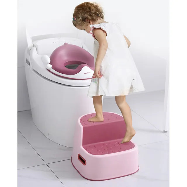 The Little Angel Baby Potty Training Step Stool is perfect for growing Toddlers and kids. The anti-slip footpads make them stable, safe and easy to use for your little one. Multi-functional Baby step up stool can be used as a stool or a footrest with endless possible uses. It can be used in the kitchen, bathroom, etc,. The double height design and extra-wide steps help children gradually become independent as they transition from toilet potty training to hand washing, brushing their teeth in the sink, and finally reaching the countertops and cabinets in the home, the kitchen. Easy to use, clean and store.