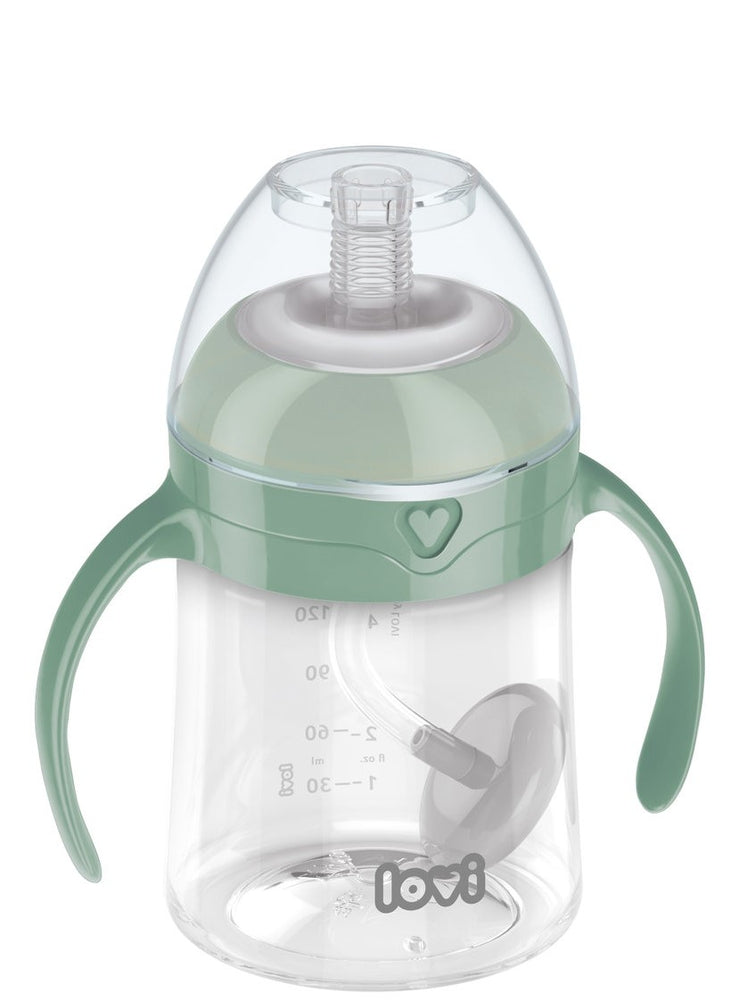 كوب لوفي الأول مع شفاطة مرجحة سعة 150 مل، أخضر - كوب تدريب للأطفال لسهولة الانتقال والشرب بدون انسكاب