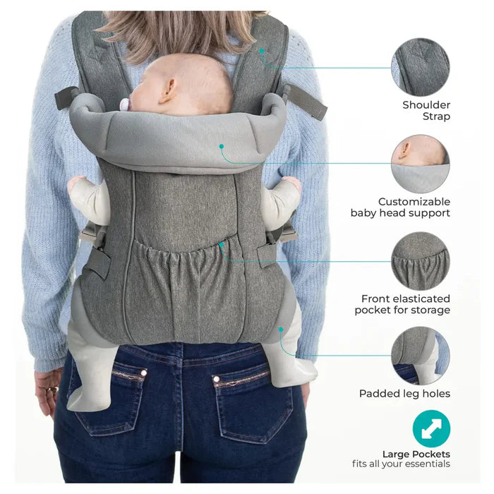 حيث يلتقي الأناقة بالعملية! حاملة الأطفال MOON Kary Go 2 في 1 تتكيف مع نمو طفلك، وتوفر خيارات الحمل الأمامي والخلفي. مصممة هندسيًا لدعم نمو الوركين بشكل صحي، وتحافظ على انتعاشك وراحة طفلك بفضل قماشها المسامي. أحزمة الكتف المبطنة توزع الوزن بالتساوي، بينما تسمح الأبازيم سهلة الاستخدام بتغيير الوضعيات بسلاسة. مناسبة للأطفال حديثي الولادة وحتى الرضع من وزن 3.5 إلى 12 كجم. اللون: رمادي