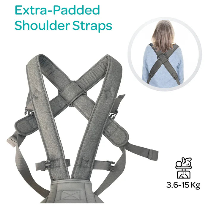 - أحزمة مبطنة وقابلة للتعديل: أحزمة كتف قابلة للتعديل لراحة الوالدين