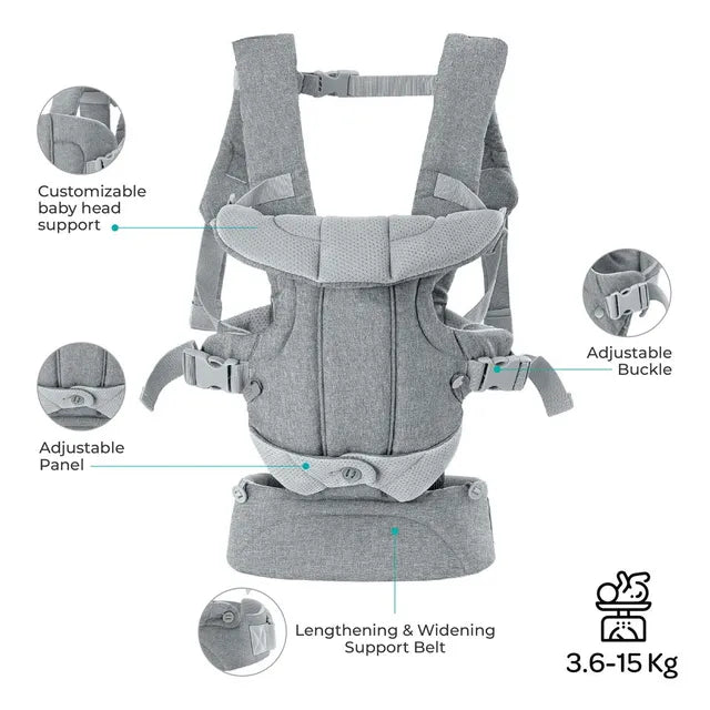- تصميم متعدد الاستخدامات 4 في 1: يتميز هذا الحامل القابل للعكس بسهولة تحويله إلى أربع وضعيات مختلفة لحمل طفلك: مواجهة الطفل في المقعد الضيق، مواجهة الطفل في المقعد الواسع، مواجهة الطفل للخارج، أو كحقيبة ظهر. يناسب الأطفال من وزن 3.6 إلى 15 كيلوغرامًا، وهو مثالي للرضع والأطفال الصغار.