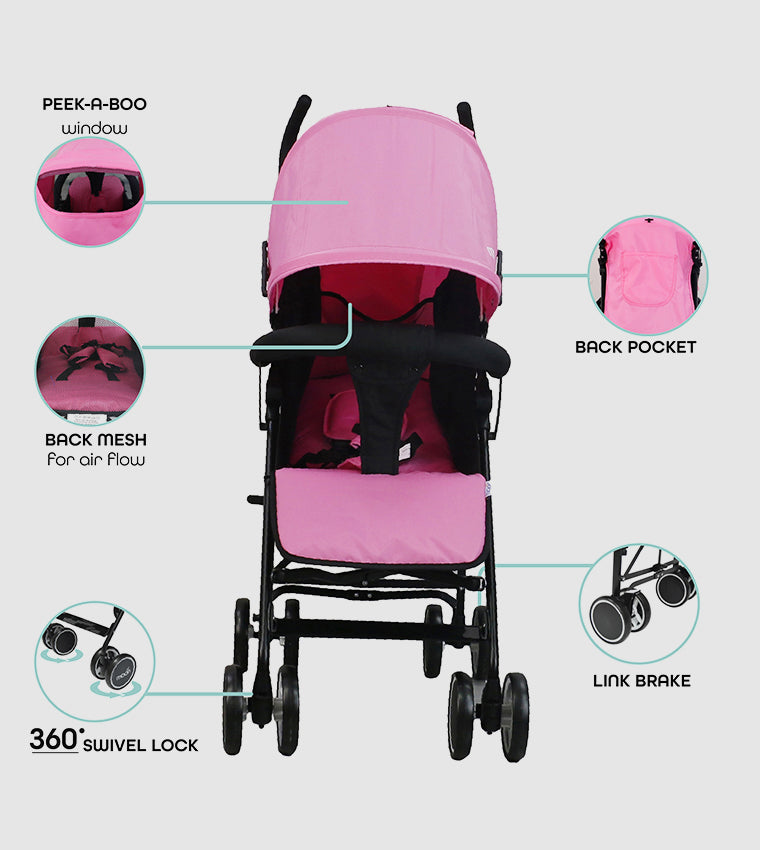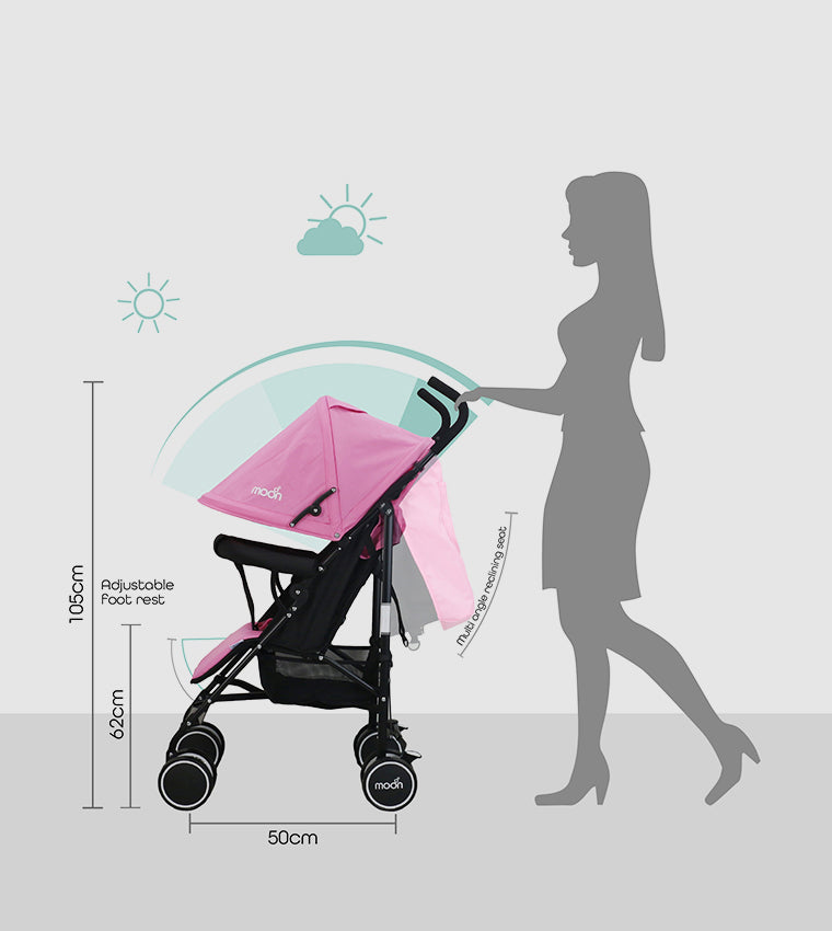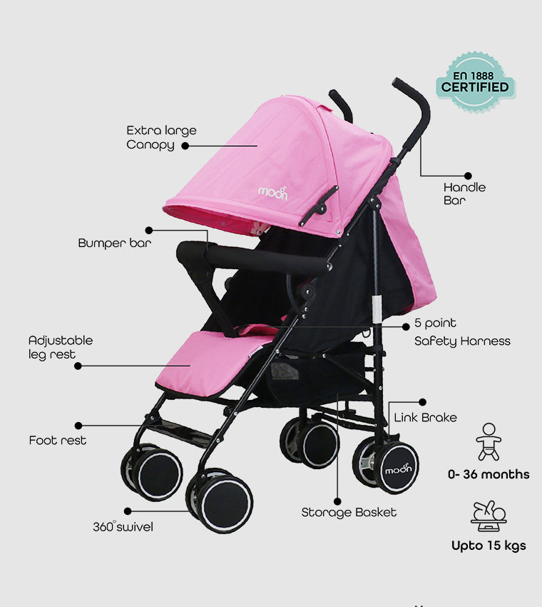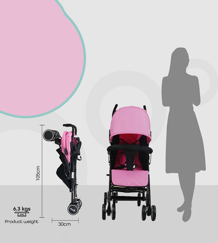 عربة أطفال مون نيو بلس للسفر باللون الوردي