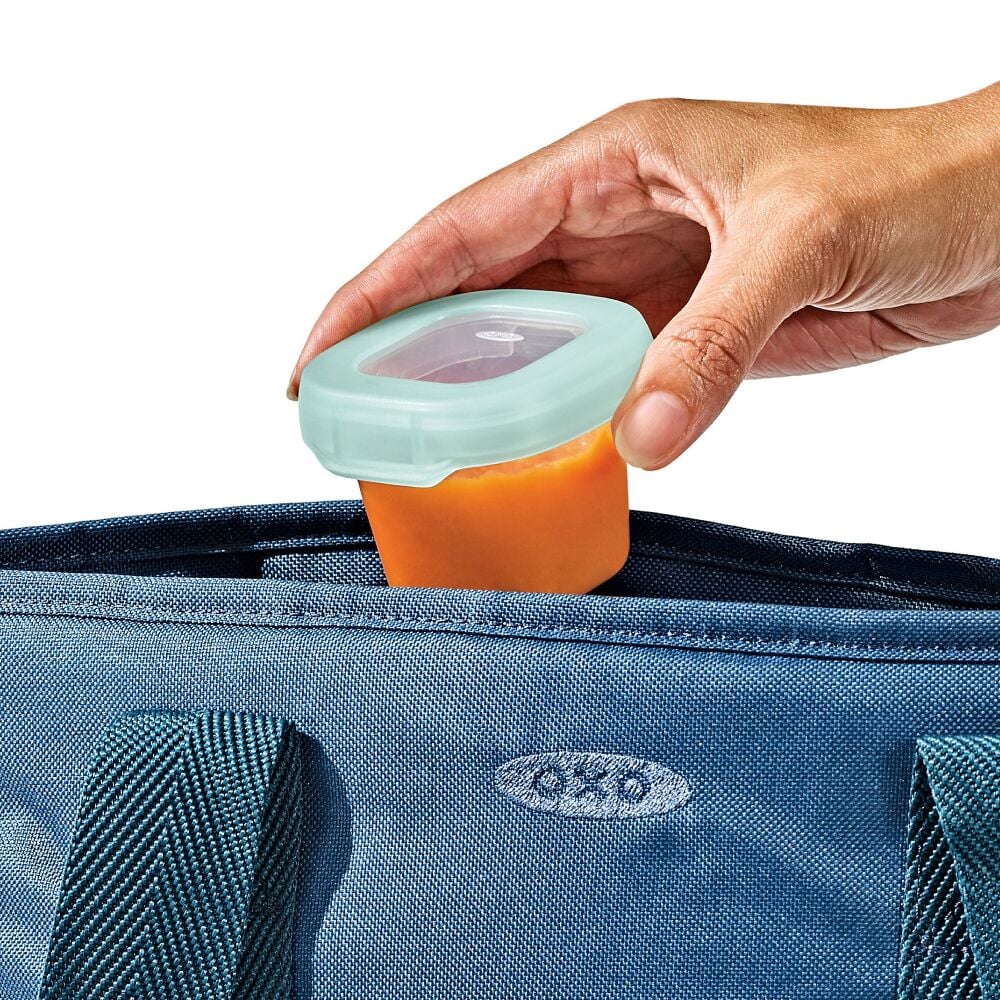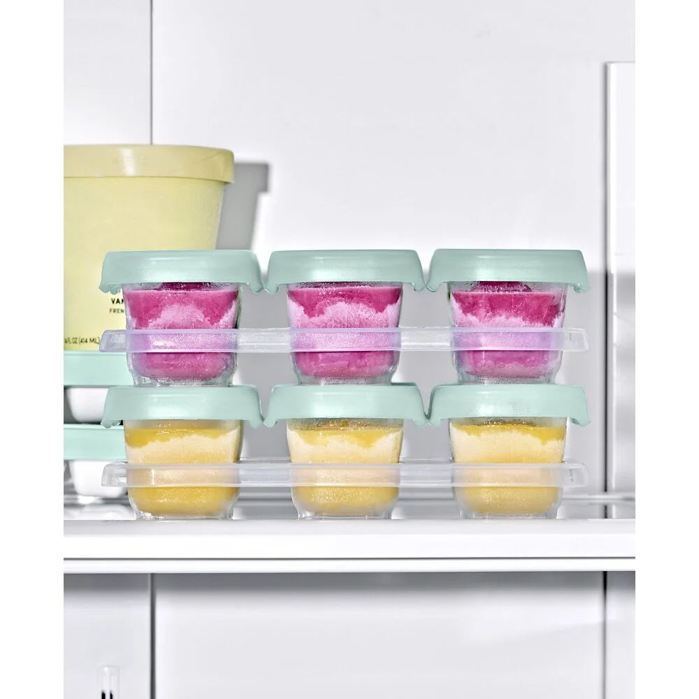 توفر حاويات تخزين الطعام OXO Tot Baby Blocks نفس العناية التي توليها لطعام الطفل المصنوع منزليًا. يمكنك بسهولة تقسيم وتخزين وتجميد وتسخين وتقديم الوجبات التي طهيتها خصيصًا لطفلك باستخدام حاويات Baby Block بحجم 2 أونصة مناسب. تناسب ست حاويات سعة 2 أونصة صينية التجميد وكل منها يحتوي على علامات قياس لجعل التقسيم سهلاً. هل أنت في الخارج؟ الحاويات محكمة الغلق ومقاومة للماء ومضادة للتسرب. ألق نظرة على الحاويات الشفافة لتحديد المحتويات، ثم ضع واحدة في حقيبة الحفاضات الخاصة بك لإذابة الجليد بسهولة وإطعام طفلك عندما تكون بالخارج مع طفلك. يجعل الغطاء سهل الفتح والإغلاق الحاويات خيارًا مريحًا. تستقر صينية التخزين المريحة بشكل مسطح على رف الفريزر أو في درج الفريزر ويمكن تكديسها لتوفير المساحة. آمنة للاستخدام في الميكروويف والفريزر. آمنة للاستخدام في الرف العلوي لغسالة الأطباق. خالية من BPA والفثالات وPVC.