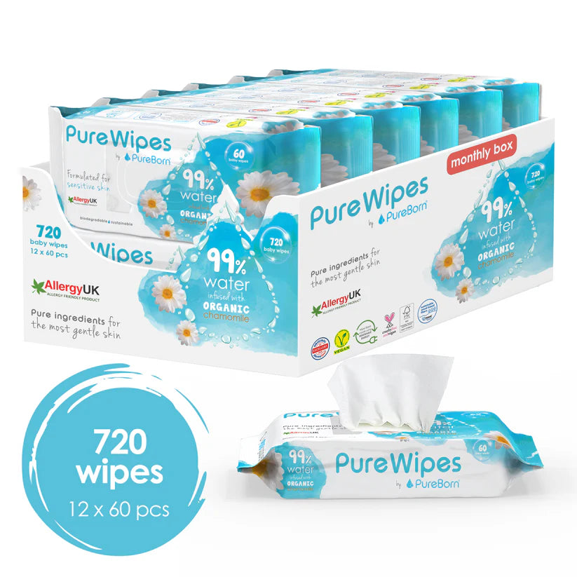 مناديل "بيور وايبس" مصنوعة من 99% ماء، ممزوجة بالبابونج العضوي. صُممت خصيصًا للبشرة الحساسة، وهي معتمدة من جمعية الحساسية البريطانية. أوراق المناديل قابلة للتحلل الحيوي، وأليافها مصنوعة باستخدام الطاقة المتجددة. إنها نباتية، وخالية من القسوة، ومعتمدة من قِبَل أطباء الجلدية في شركة ديرما تيست المحدودة، وهي آمنة للاستخدام اليومي. صُممت المناديل لتكون مضادة للحساسية بلطف، وهي معتمدة بيئيًا.