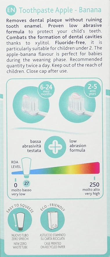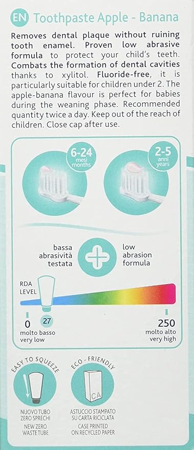 - **Mild Flavor:** Pleasant apple-banana flavor that appeals to children, making brushing more enjoyable.