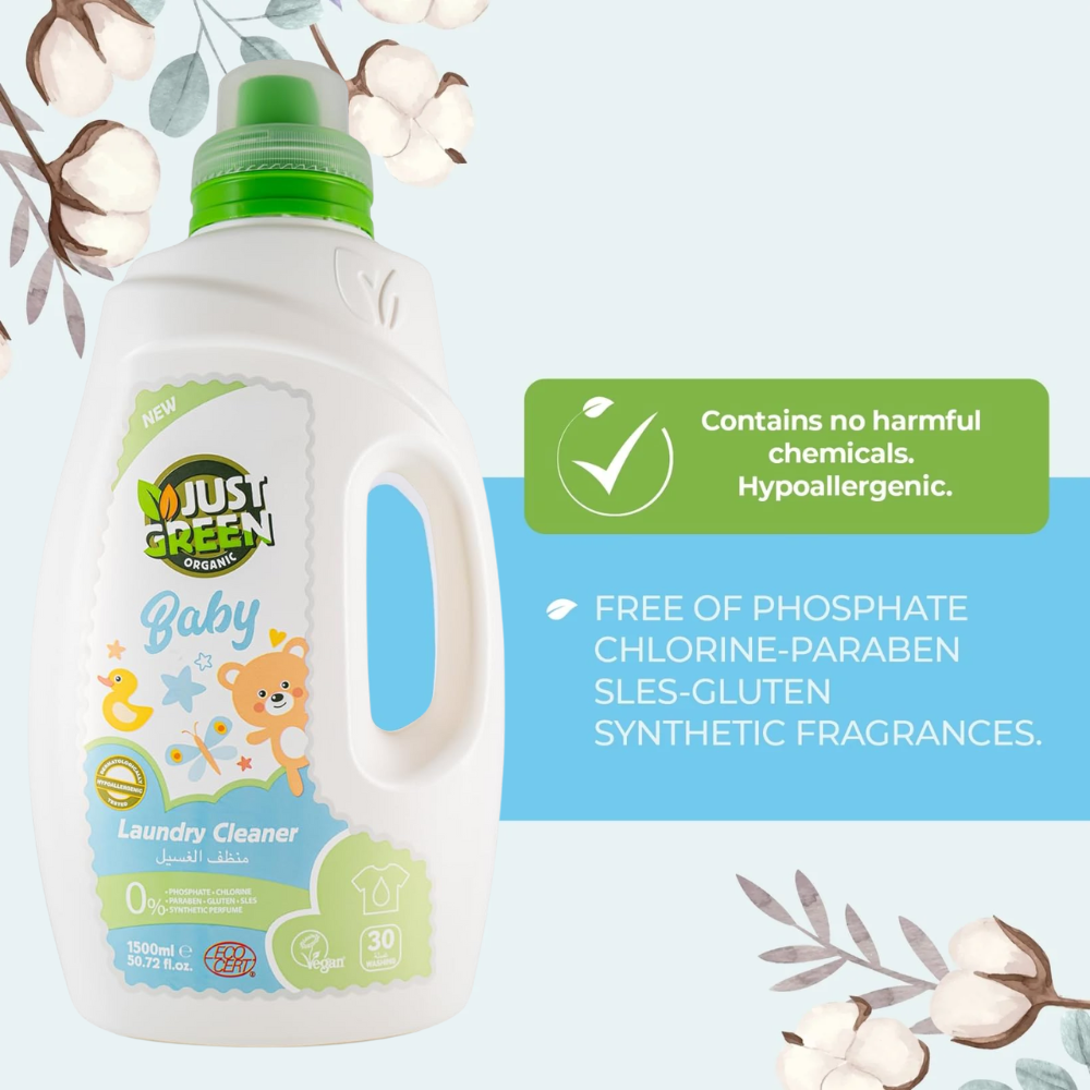 Just Green Organic Baby Herbal Laundry Cleaner provides thorough cleaning without damaging the clothes of your children and babies. It is suitable for hand and machine use. You can use it separately with whites and colors. Thanks to its formula that does not contain harmful chemicals, it does not leave toxic residues in your babies' clothes.
