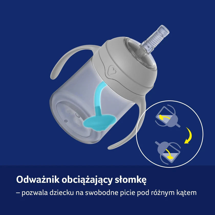 The LOVI First Cup with Weighted Straw (Harmony) is designed to help babies aged 6 months and up transition smoothly from bottle to cup. The smart weighted straw moves with the liquid, allowing your baby to sip from any angle—even when tilted—encouraging independence and proper hydration.