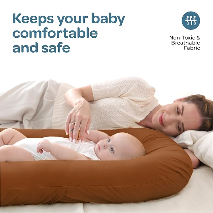 Snuggle up your little one in our cozy baby lounger - where safety and comfort meet."Moon baby lounger is a cozy and comfortable resting place for babies that simulates the feeling of being held in a mother's arms. It provides a secure and snug environment for babies to relax, rest, and play. The soft and plush materials used in the lounger are carefully selected to mimic the warmth and comfort of a mother's embrace, providing a soothing and calming effect on the baby. The snug design helps to keep the baby in a safe and secure position, just like a mother would hold her baby.