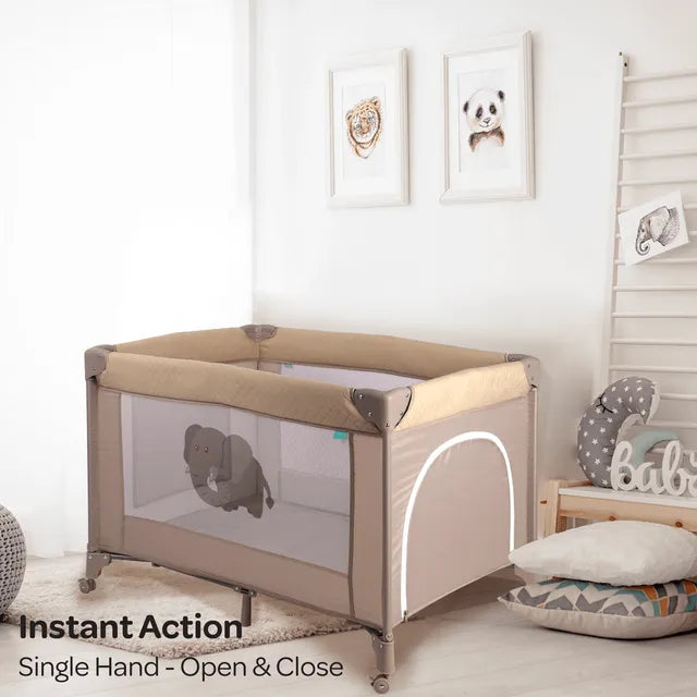 - Breathable Airy Mesh Sides: Designed with breathable mesh sides to provide excellent airflow, keeping your little one cool and comfortable in this portable playpen for babies and toddlers.