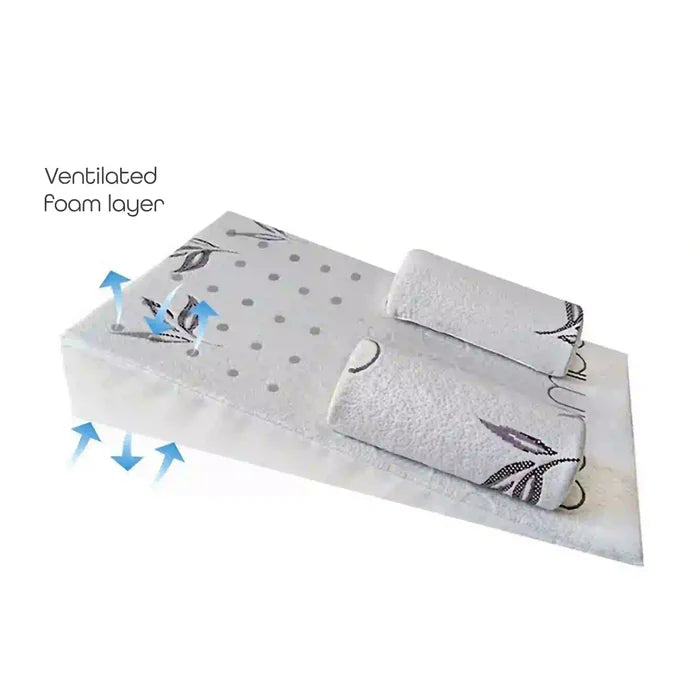 The tapered wedge shape is designed to help the baby breathe more easily, and to improve digestion and reduce reflux.