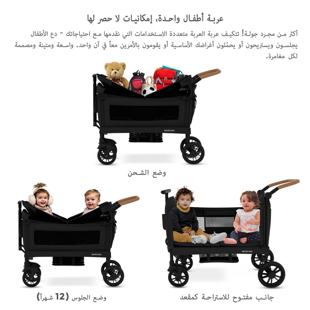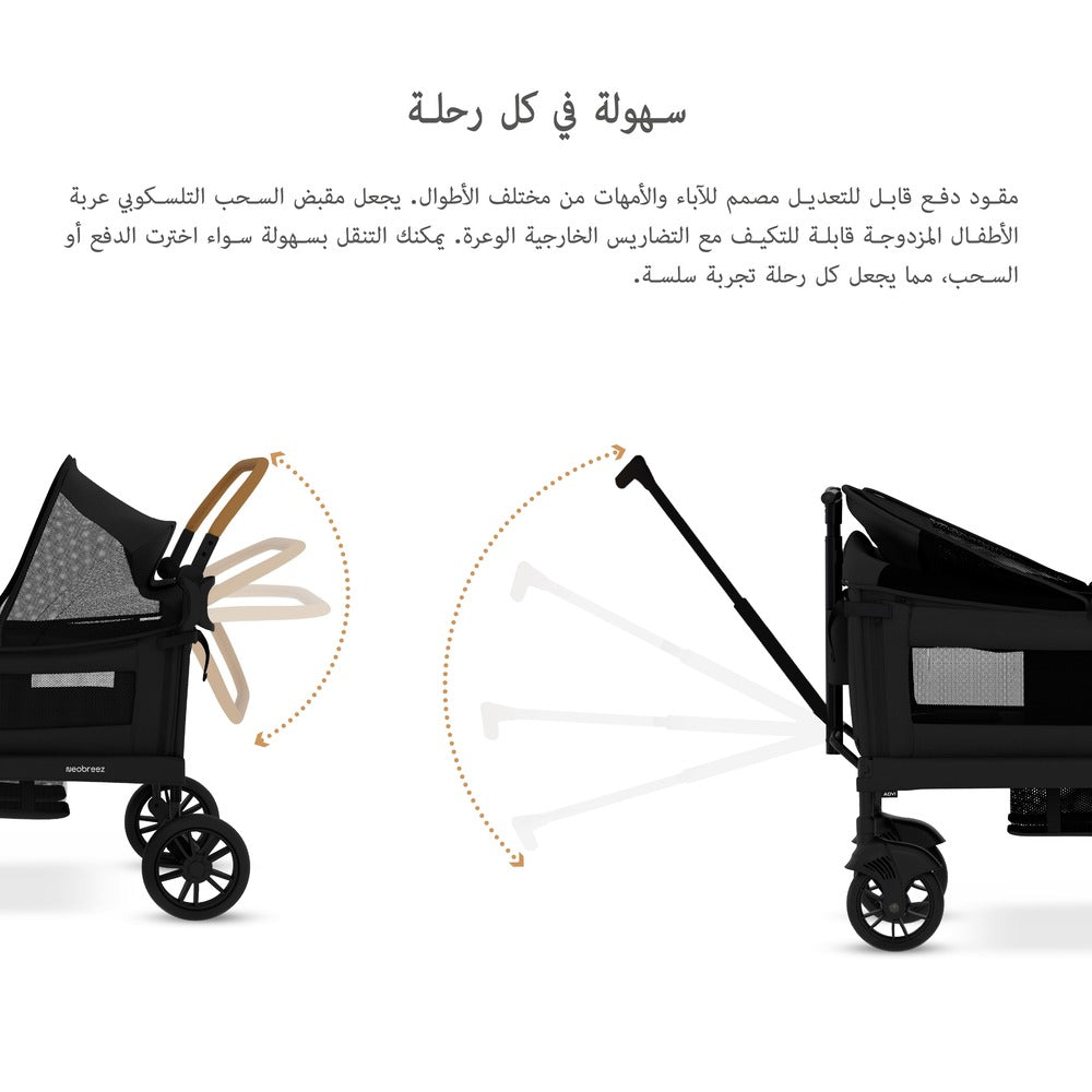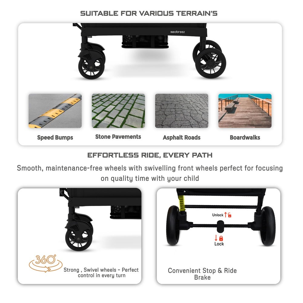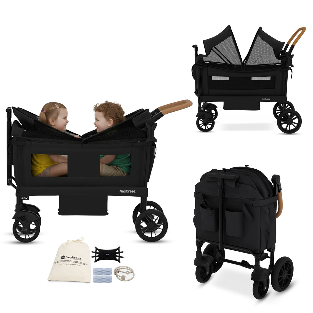 Neobreez ADVI Wagon Cargo Push and Pull Foldable Double Stroller Black