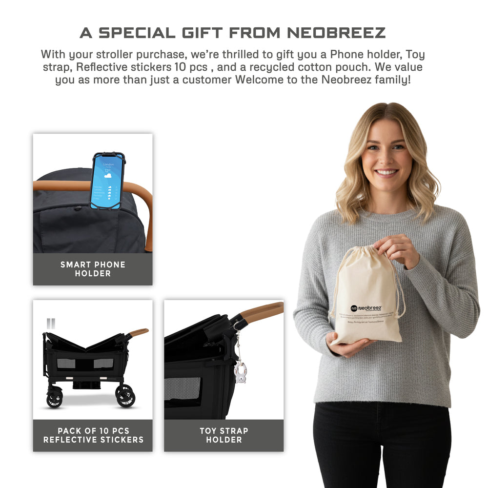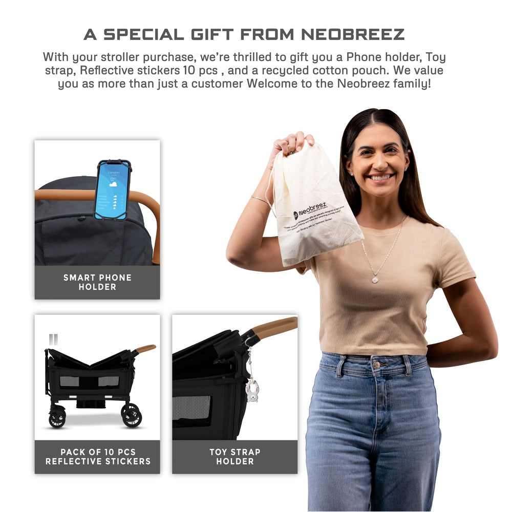 Experience the ultimate blend of convenience, comfort, and style with the Neobreez ADVI Wagon Cargo Stroller. This compact stroller wagon is designed for families on the go and accommodates two kids comfortably. It features plush seats with 5-point harnesses to ensure your little ones stay safe and secure.