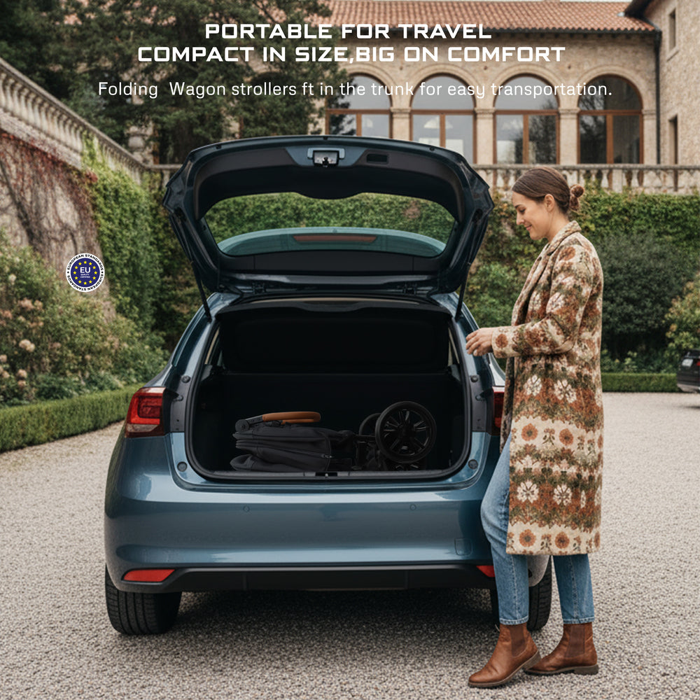 - Safety First: This foldable wagon stroller trolley equipped with dual 5-point harnesses, reflective canopy strips for low-light visibility, and meets European safety standards EN 1888-1/2:2022; backed by a 3-year warranty.