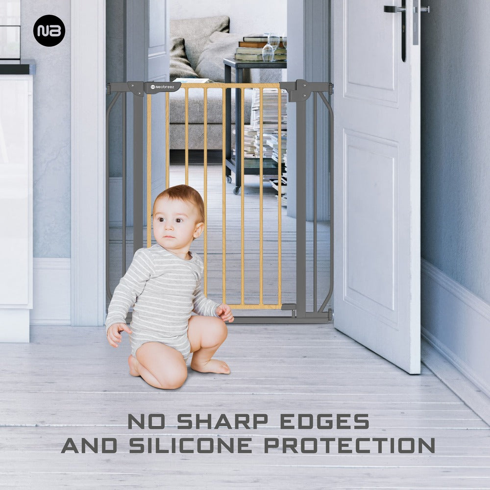 Neobreez FERMII Auto Close Baby Gate No Drill Stair Barrier 75-110cm Grey