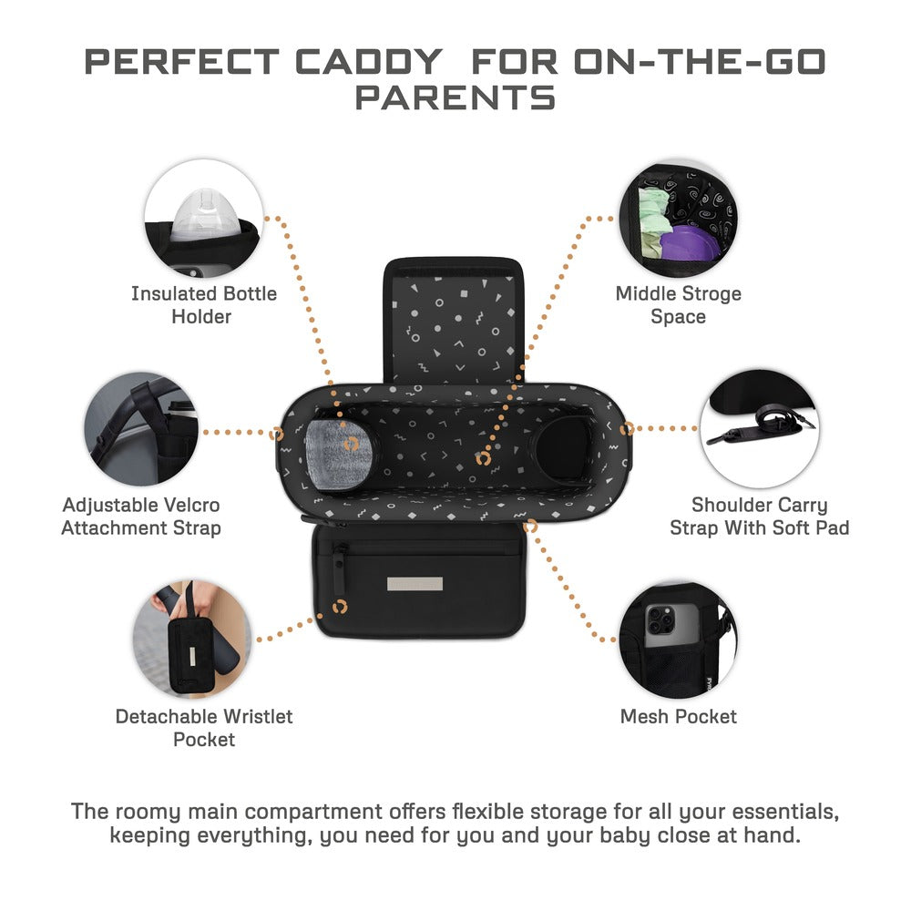 Neobreez Fyra Stroller Organizer Caddy with Insulated Cup Holder Black