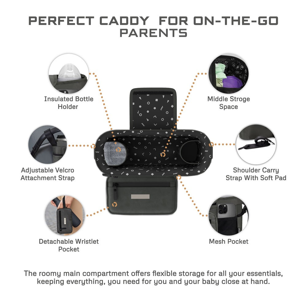 Neobreez Fyra Stroller Organizer Caddy with Insulated Cup Holder Dark Grey