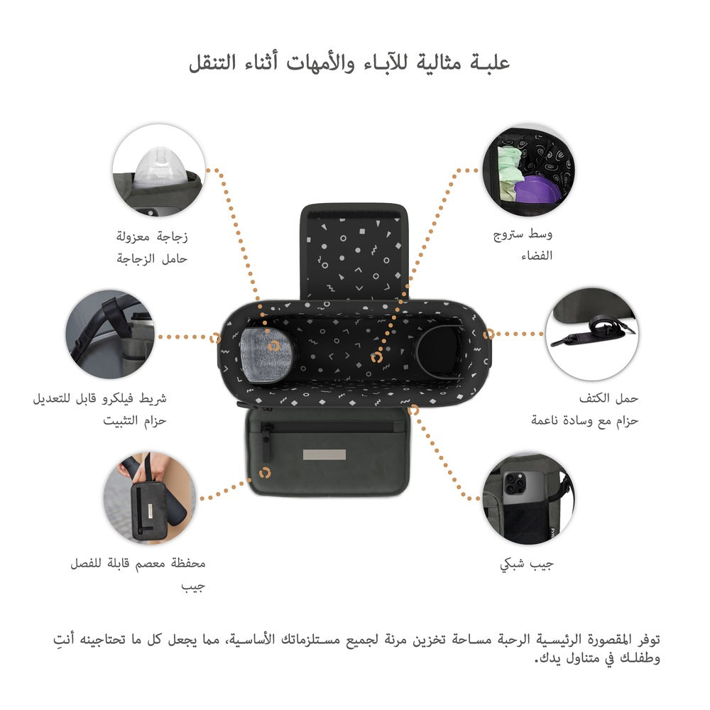 - Universal Fit: Enjoy a stress-free outing with our versatile buggy organizer, designed to fit most strollers, prams, and pushchairs. Thanks to its fully adjustable Velcro straps, you'll get a secure, custom fit every time. Easily store all your essentials for both you and your baby in this stroller organizer bag.