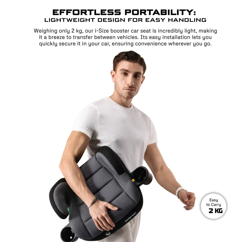 Upgrade your child's travel experience with the Neobreez i-FIRA i-Size Booster Car Seat. Specially crafted for children between 125–150 cm, this travel booster car seat offers next-level safety that meets the latest i-size ECE R129 standards, giving parents complete peace of mind. Plush, ergonomic padding and supportive armrests deliver all-day comfort, making even long journeys a breeze for growing kids. i-FIRA backless booster car seats have dual cup holders to keep drinks within reach, while the lightweight 2kg design makes switching cars effortless. Spacious enough for every adventure and cozy enough for everyday commutes, the Neobreez i-FIRA booster seat for kids fits perfectly into modern family life. Whether it's school drop-offs or road trips, the easy installation means you're always ready to go. Trust the Neobreez i-FIRA portable booster seat for comfort, convenience, and uncompromising safety on every ride.