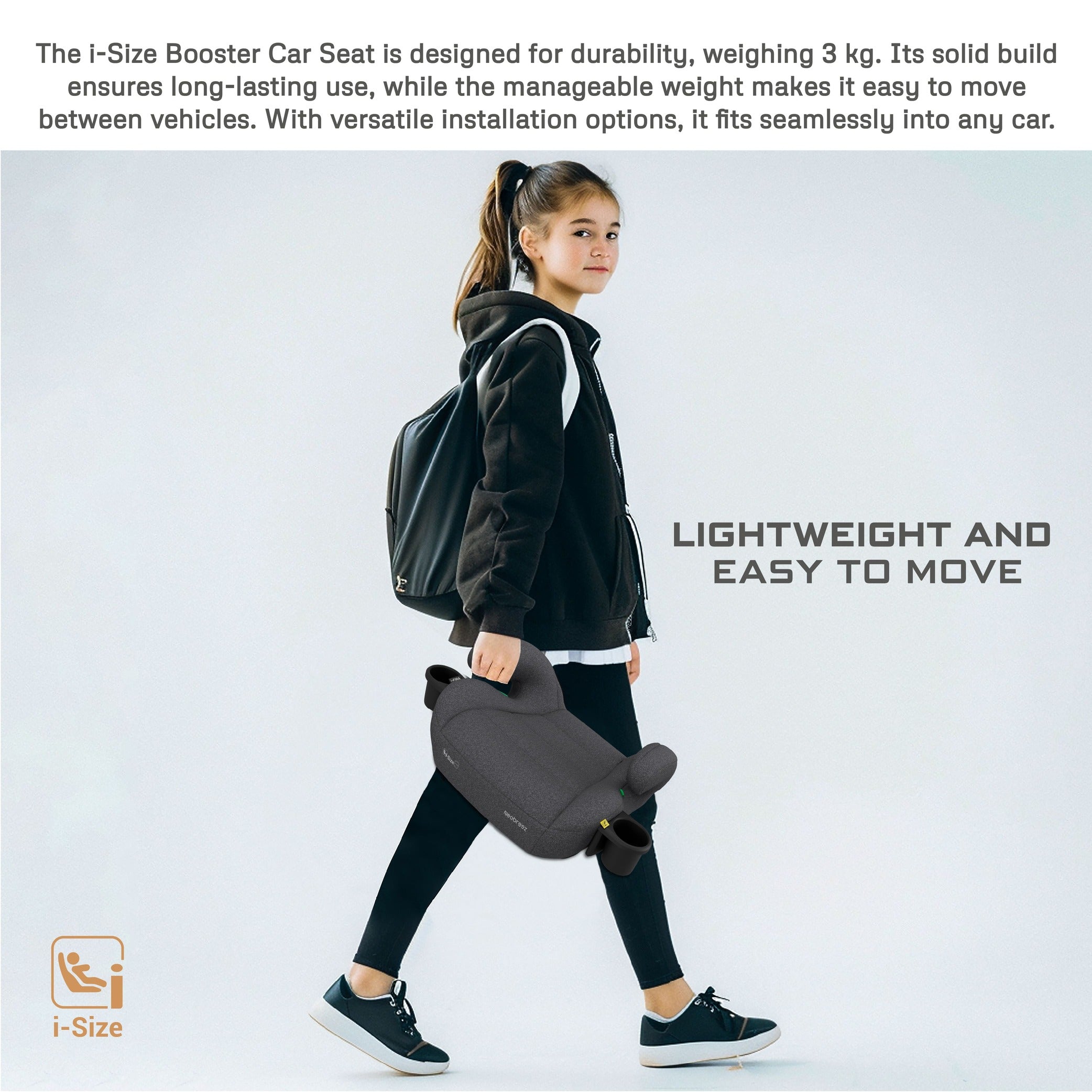 Upgrade your child's car safety with the Neobreez i-SANFARO i-Size Isofix Booster Seat. Perfect for kids 125-150 cm (approx. ages 6-12 years), this lightweight booster car seat (just 3 kg) offers ultimate portability for busy families, fitting easily in any car with or without ISOFIX. Certified to ECE R129 i-Size standards, it ensures optimal seat belt placement for maximum protection on every ride, giving parents peace of mind. The backless booster car seat Plush foam padding, ergonomic armrests, and soft, breathable fabric keep your child comfortable on both short commutes and long journeys. The portable booster car seat for kids includes removable cup holders for convenience and a machine-washable cover for easy cleaning. Make every ride safe and cozy with this top-rated, easy-to-install kids booster car seat that adapts to modern and older vehicles alike. The Neobreez travel booster car seat is your go-to solution for reliable, comfortable, travel-friendly child car safety. Perfect for growing kids, school runs, and road trips.Grey