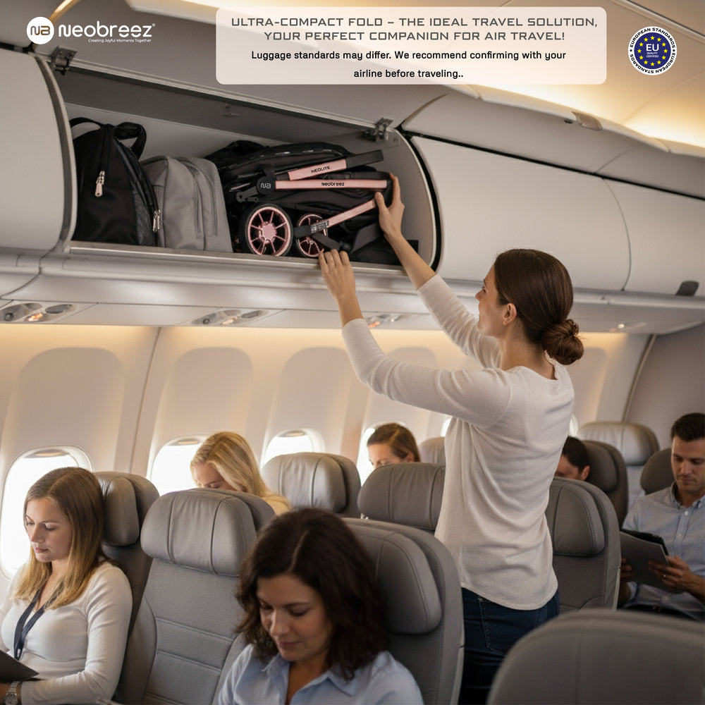 Make travel with your child easy and stress-free with the Neobreez NEOLITE Stroller - a perfect mix of style, comfort, and convenience for modern families. Ideal for use from newborn to 4 years (up to 22 kg), this ultra-light stroller is cabin-approved and folds quickly with just one hand. When folded, it fits in airplane overhead compartments and can be pulled like a suitcase for easy transport. This stroller comes with a 3-year warranty.