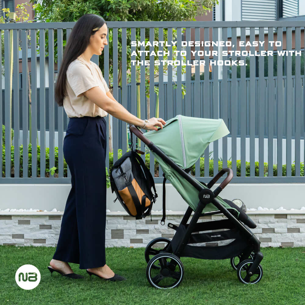 Freedom is in your hands, thanks to cushioned shoulder straps, an easy-grab top handle, and secure stroller hooks that make every outing hands-free. The integrated trolley sleeve slides effortlessly over your rolling luggage, turning this baby travel bag into your go-to travel diaper backpack. Durable yet undeniably chic, the Neobreez NIXE diaper messenger bag blends practical features with a sleek, modern silhouette, so it doubles as your mom bag, maternity bag, or even a stylish work tote.
