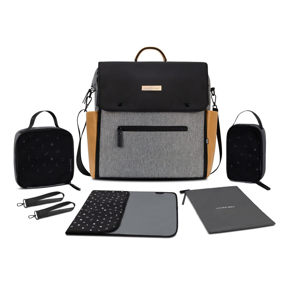 Neobreez Nixe Diaper Backpack 7pcs Set with Changing Mat Wet Bag and Pouches Grey