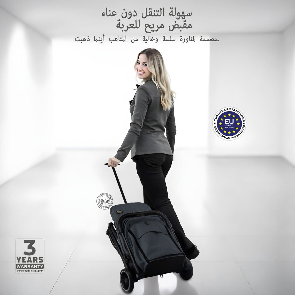 - Maximum Safety & Durability: This air travel stroller features a reflective 5-point harness, European safety standards (EN 1888-1:2018), a lightweight corrosion-resistant frame, and a stylish leatherette push bar.