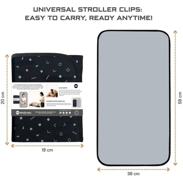 Neobreez Reusable Diaper Changing Pad Wipeable Surface Dark Grey/Black