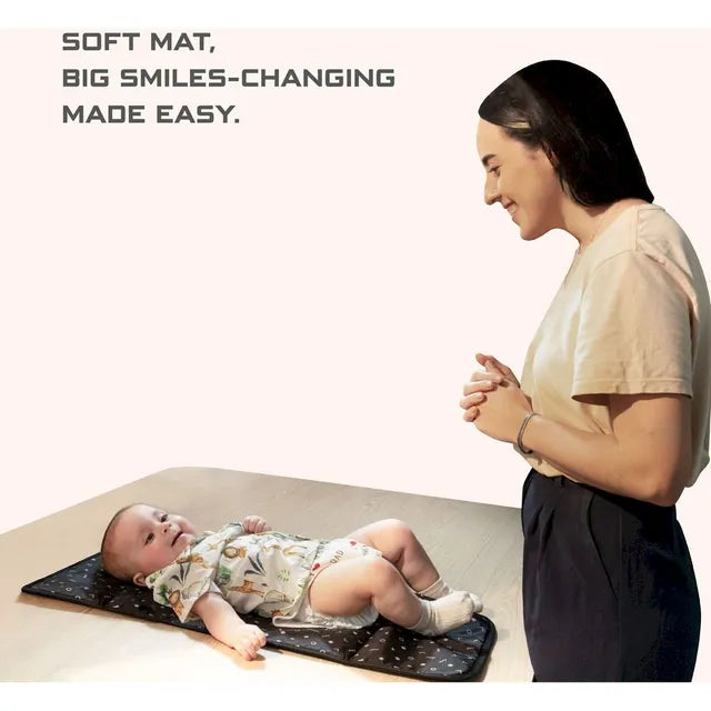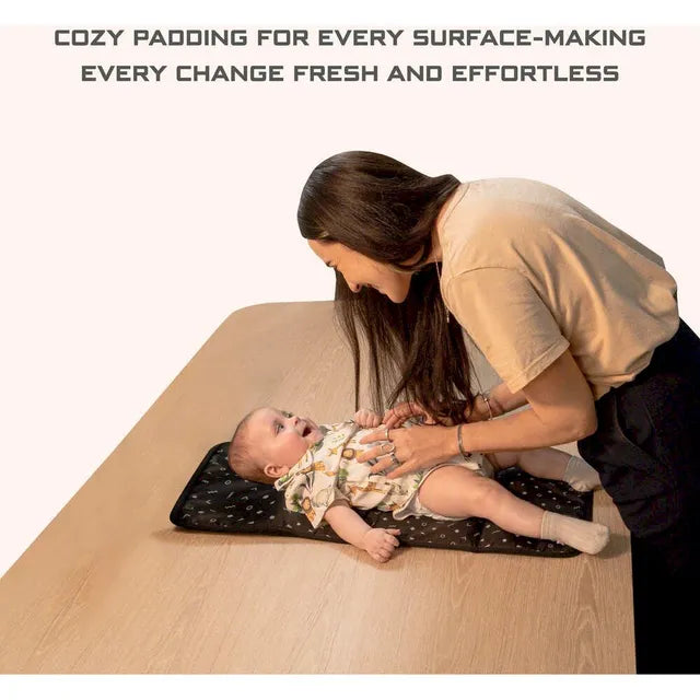 - Ultra-Portable Design: This diaper changing pad is designed to fold compactly for easy storage in any diaper bag, stress-free on-the-go changes for busy parents. It is described as made of a particularly soft and hypoallergenic material, implying a cozy and gentle surface for the child's delicate skin. This Portable Baby Changing Pad is crafted with what is stated to be lightweight, waterproof, and durable fabric, it looks like it folds neatly. The baby diaper changing pad is a sleek and practical upgrade for parenting essentials. Designed for versatile use, this diaper changing mat is easy to fold, clean, and store, with a compact size that is the ultimate convenience for diaper changes anywhere.