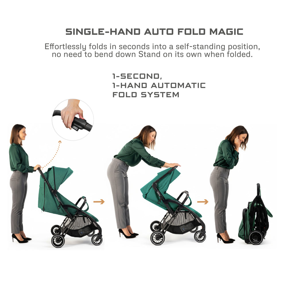 - Magic Auto-Fold Mechanism: The advanced Magic Fold system folds the THETA stroller in seconds and sets it into a self-standing position. Perfect for busy parents, it makes storage and travel hassle-free.