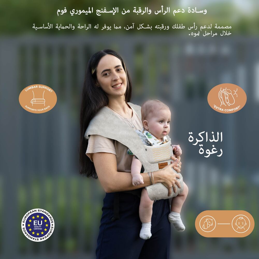 Experience effortless closeness and everyday comfort with the Neobreez ZAVII 2-Position Baby Carrier. From your very first walk together, our multifunctional baby carrier cradles your newborn in an ergonomic "M" position that supports healthy hips and spine. At the same time, plush memory foam head and neck pads cushion those delicate features. Thoughtfully designed for parents on the go, the ZAVII Travel Carrier for Babies and Toddlers keeps your little one from infancy (3.5 kg) through early toddlerhood (up to 12 kg), all while adapting to your baby's growth with easy adjustments for seat width, head support, and secure cross-back straps. Lightweight baby carriers for travel, breathable fabrics ensure both you and your baby stay cool and comfortable in every season. At the same time, a wide lumbar belt, padded shoulders, and quick-release buckles keep weight balanced even during long adventures. Compact baby carriers enough to stow away in a stroller basket and easy to switch between inward and outward facing.