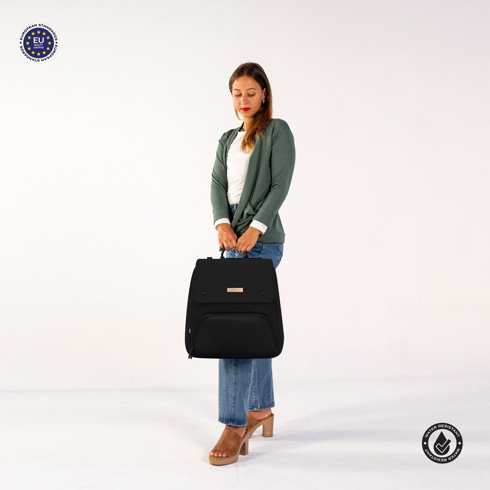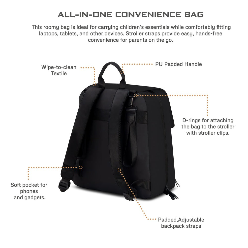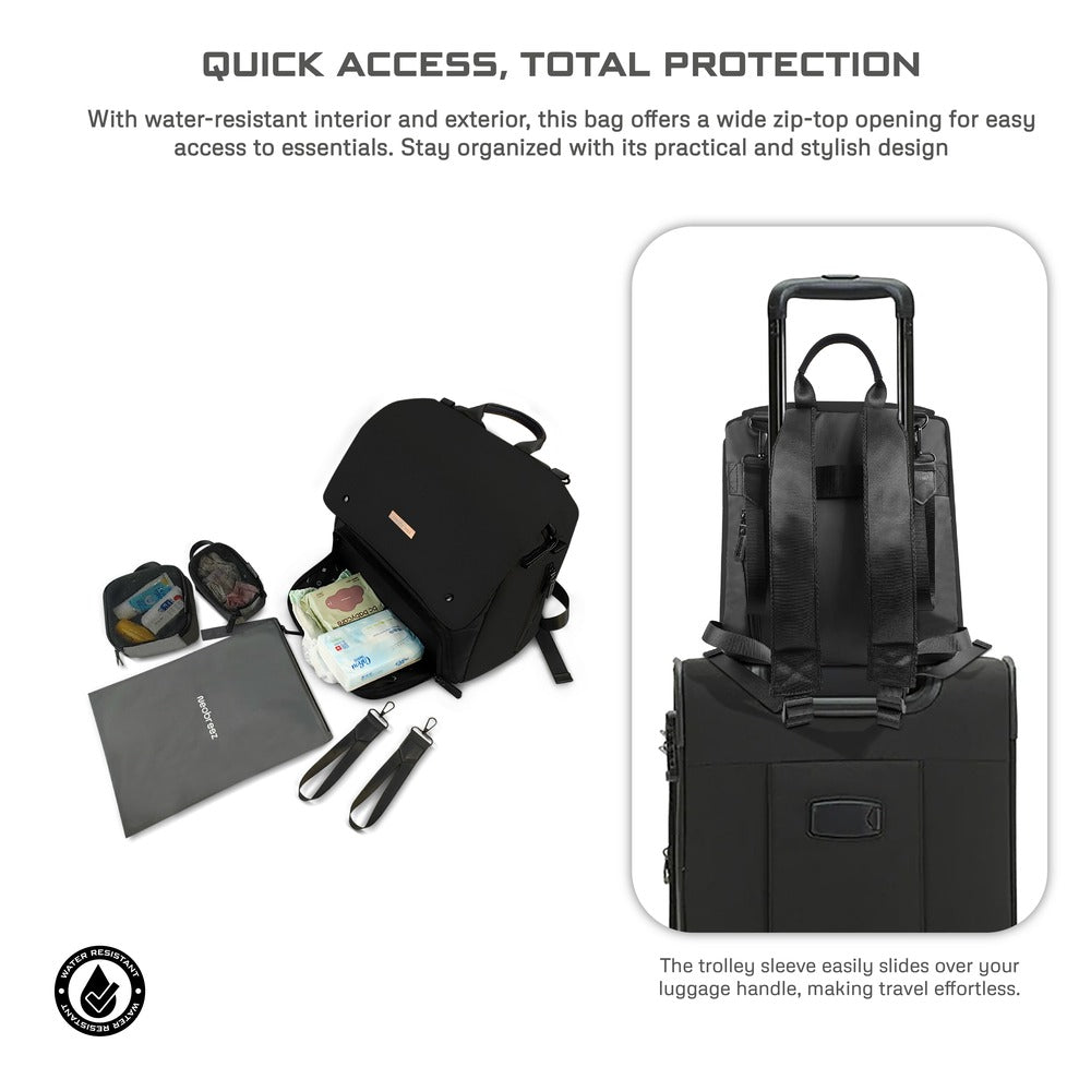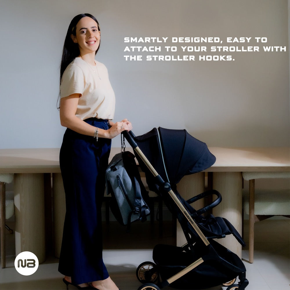Meet the Neobreez ZORI Diaper Organizer Bag, the ultimate companion for modern parents who want to keep life beautifully organized without sacrificing style. This versatile travel diaper backpack effortlessly adapts to your needs. With its roomy main compartment, multiple organizer pouches, and built-in insulated pocket, you'll have bottles, snacks, diapers, and wipes always within easy reach. The diaper bag with changing mat and quick-access back pockets means you can handle any surprise with ease, while the water-resistant fabrics and premium zippers offer peace of mind against spills and the unpredictability of parenthood.black
