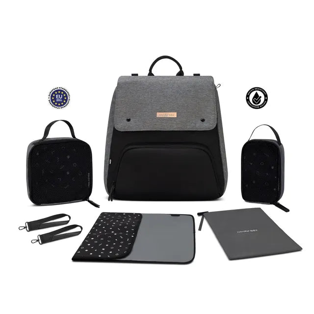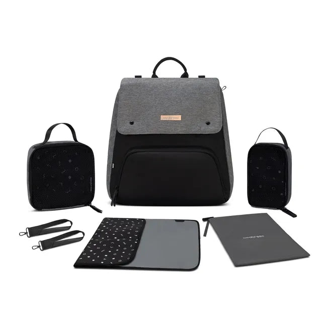 Neobreez Zori Diaper Backpack 7pc Set with Changing Mat Wet Bag and Pouches Grey