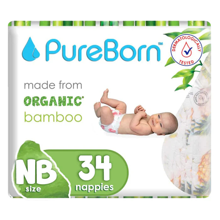 PureBorn Organic Bamboo Diapers Size NB - Pack of 34 (Sold Separately Subject to Availability)