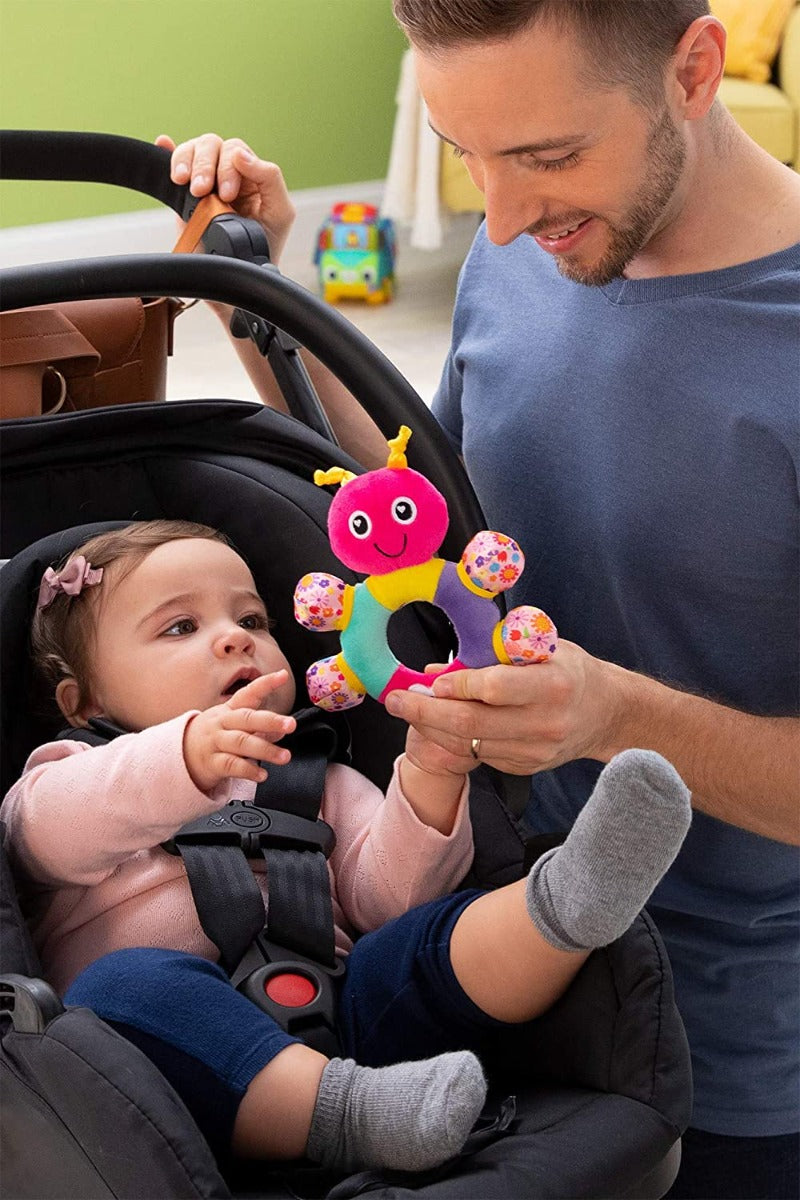 IDEAL SIZE DESIGN: Ideal size of circular design is easy to be grabbed by little hands. Ears and feet nubs also good for baby to grasp and chew on, great interactive teether toys for babies. Light-weight and small, a great on-the-go outdoor activity toy when go to travel or walking, good to play as a car seat toy, stroller toy and crib accessories toys.